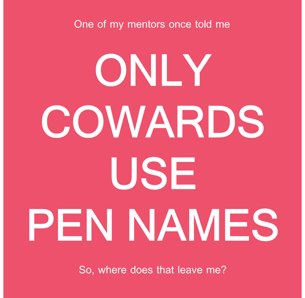 One of my mentors once told me “Only cowards use pen names.” So, where does that leave me?